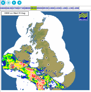 This is not the sort of weather forecast that prognosticates in the largely meaningless form of a percentage (if you already suspect it might pour down and are trying to decide whether to go out or not, then knowing that there is, say, a 40 per cent chance of rain won’t be much help). This is a map showing, in half-hour segments, where the rain has been and the direction it is traveling, enabling you to work out for yourself if it is likely to fall upon your helmeted head should you venture out on your bicycle. I am talking about the simple genius of the Met Office rainfall radar.