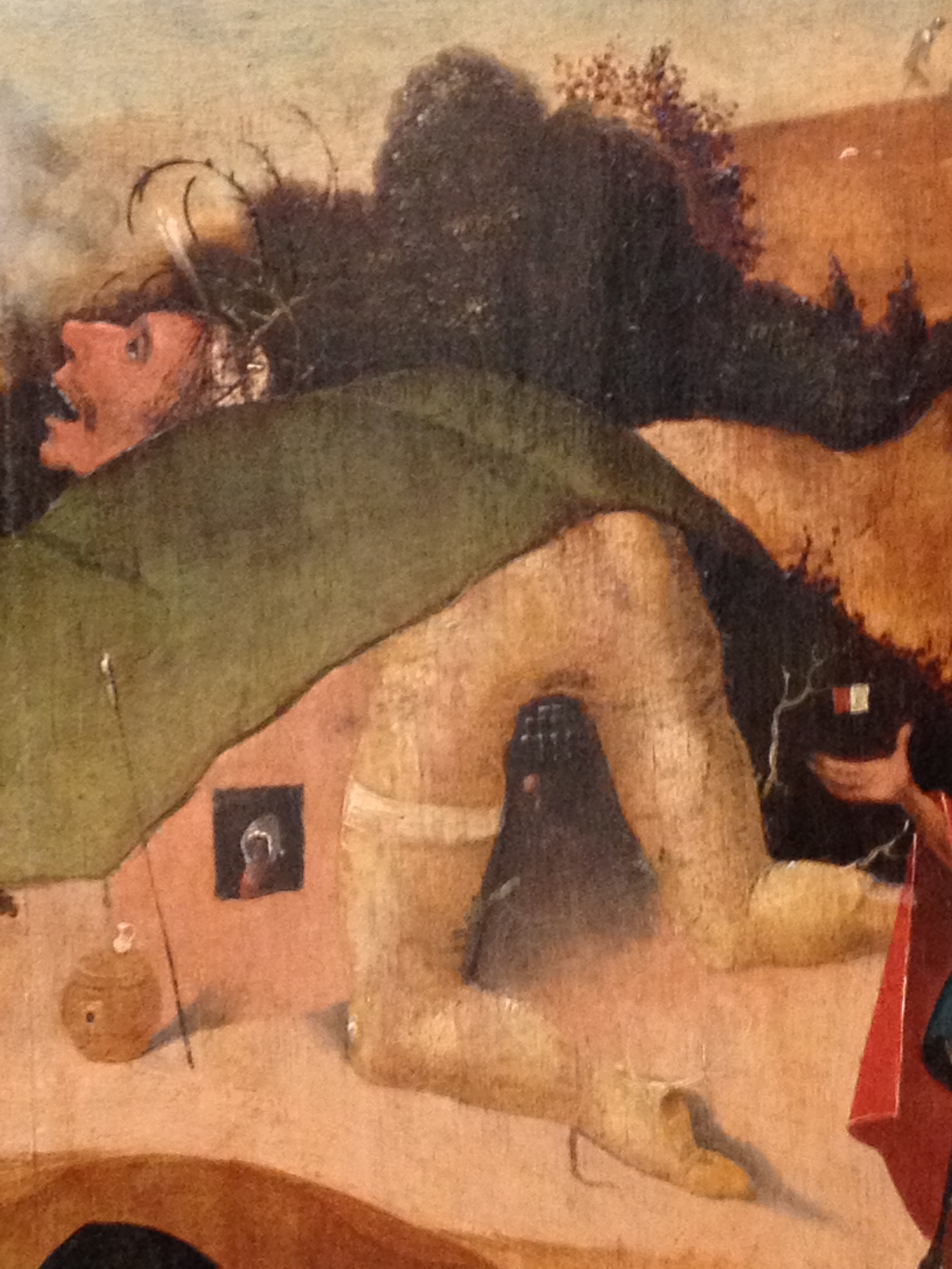 This is a detail from the Hieronymous Bosch triptych The Temptation Of Saint Anthony. It’s not the most fantastical or insane product of Bosch’s mind or, indeed, of this particular painting, which we saw in the Musée de Beaux Arts in Brussels. But perhaps it serves as a metaphor for how we should view any Bosch work. He presents us with an arse. Naturally, we ask, what is the meaning of this arse? And yet we are forbidden from ever knowing: our own rationality is the portcullis, blocking us from entering and exploring the insanity of Bosch. Either that, or it’s just a man bending over with the front of a castle stuck between his legs. We, and future historians, can only speculate.