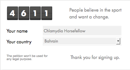 Who has signed the Change Cycling Now petition? » Chlamydia Horsefellow, Bahrain