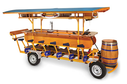 It’s a common scenario for the amateur cyclist: your club’s alcohol-based social event is drawing to a close, and you’re faced with the decision to either go home or continue the revelry elsewhere. Well, worry no longer, because everyone can now do both thanks to a bit of Dutch ingenuity. Boasting speeds of up to – gasp! – 5mph, the Pedal Pub is a steel 10-seater bicycle equipped with a barrel, a beer tap, cup holders and a sound system. What could possibly go wrong? The only drawback is a possible increase in membership fees to cover costs, as each Pedal Pub costs a sobering £26,000.