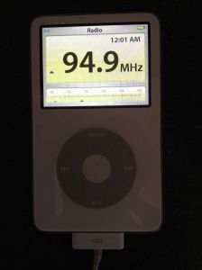 It looks like a Nano that’s grown a tail, but it’s actually an FM radio. Plug it into the old version of the iPod and the screen becomes a transistor receiver dial.