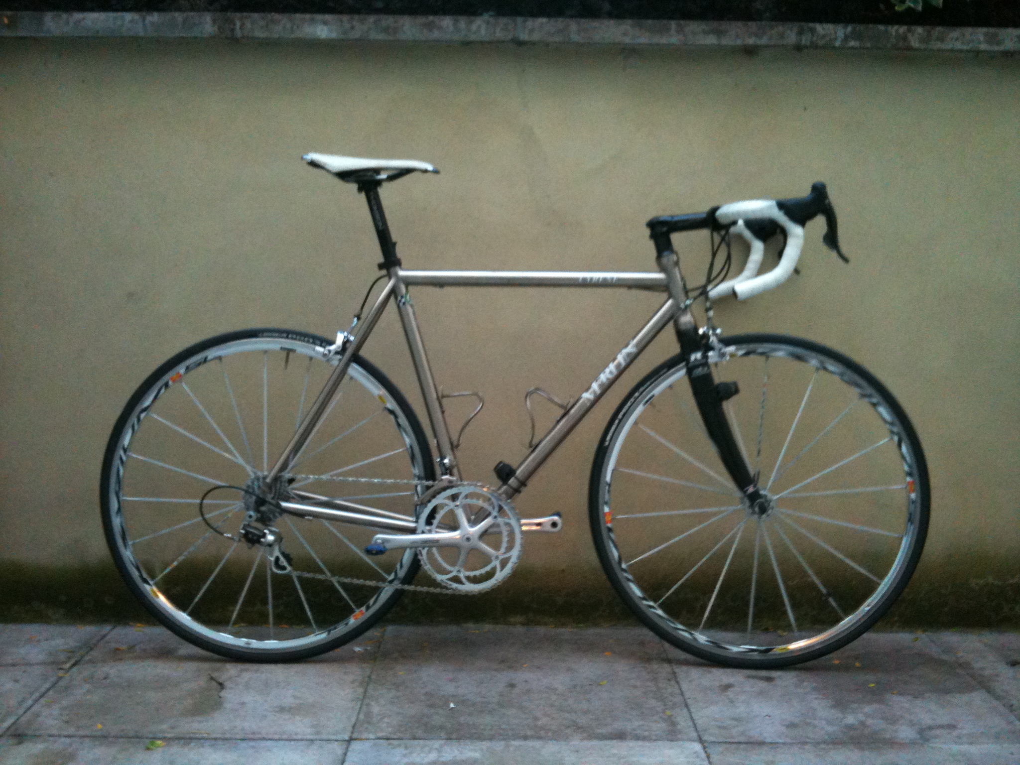 If you want to know whether or not your bike is truly suited to you, then sleep with it by your bed. Go to sleep late, wake up too early, and look at it as soon as you get up. Does it make you want to ride, even if your body is telling you not to bother? Then congratulations, you have chosen a great bicycle. For years I kept the Merlin next to our bed (yes, our bed – I managed to keep the girl) alongside an aluminium Merckx and a stickerless steel Glider, and it still inspires me to ride more than its two companions. Gleaming, naked titanium, white bar tape and white Fizik Aliante saddle: it looks indomitable, enduring, immortal, even though I’m no Christopher Lambert. The chunkier and more functional Campag gets, the more elegant my 2006 cranks look. And the Ksyriums, originally chosen out of practicality, please me with the simplicity of their thick spokes; when a child draws a pair of bicycle wheels, they draw SLs or something like them.