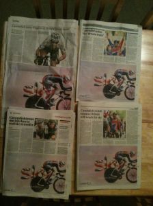 Anyhoo, the good news is that (clockwise from top left) The Guardian, The Daily Telegraph, The Times and The Independent all gave the story half a page. Perhaps not coincidentally, all of them also had a half-page ad for Team Sky and British Cycling underneath.